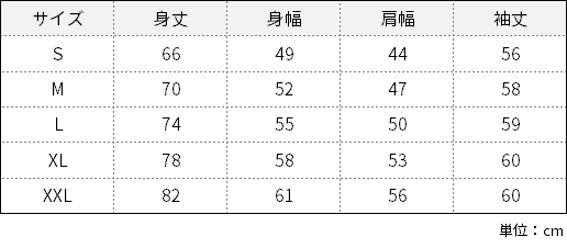 ・サイズ:S、M、L、XL、XXL ※男女共通