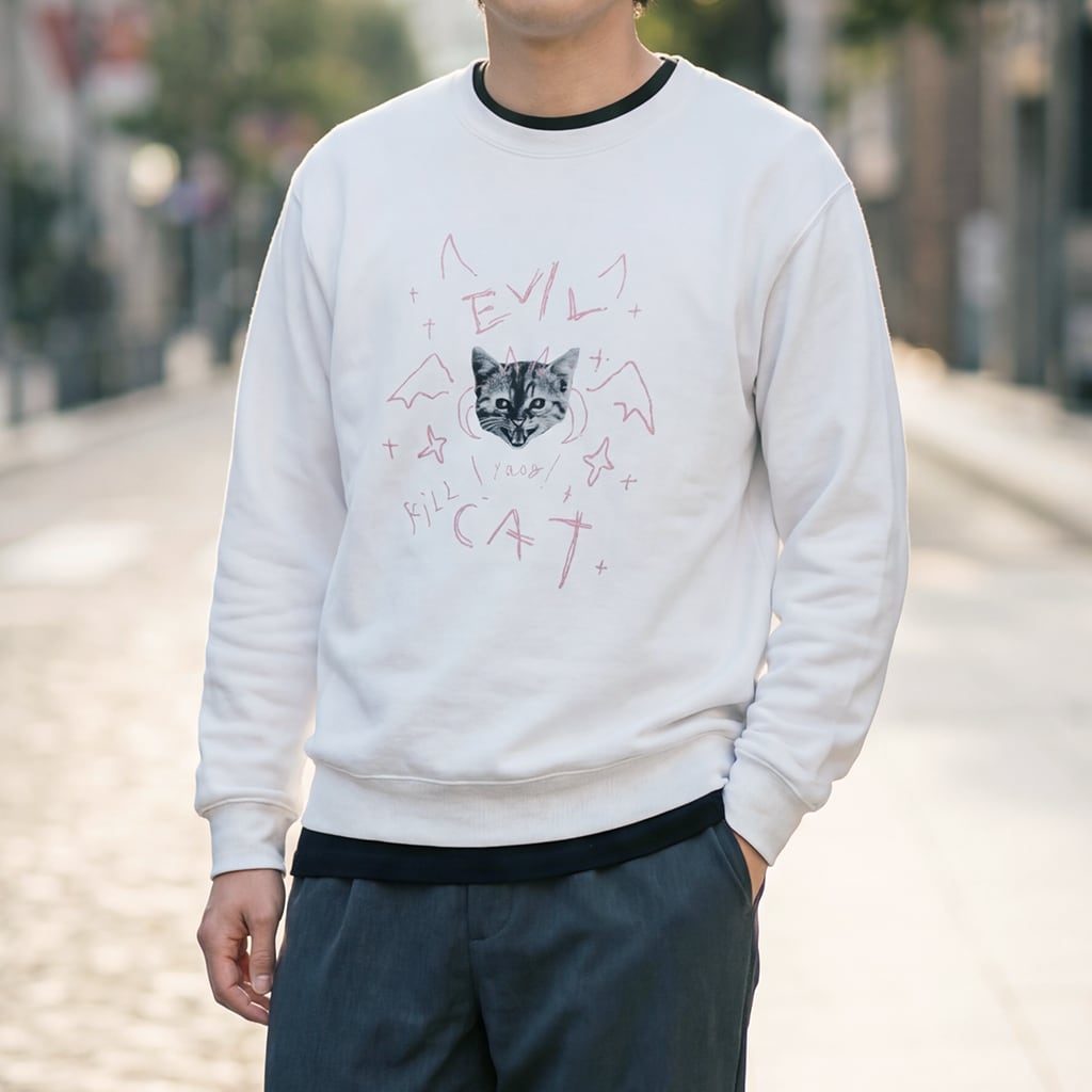 まったく無邪気なネコを落書き風にデザインしたスウェットです。